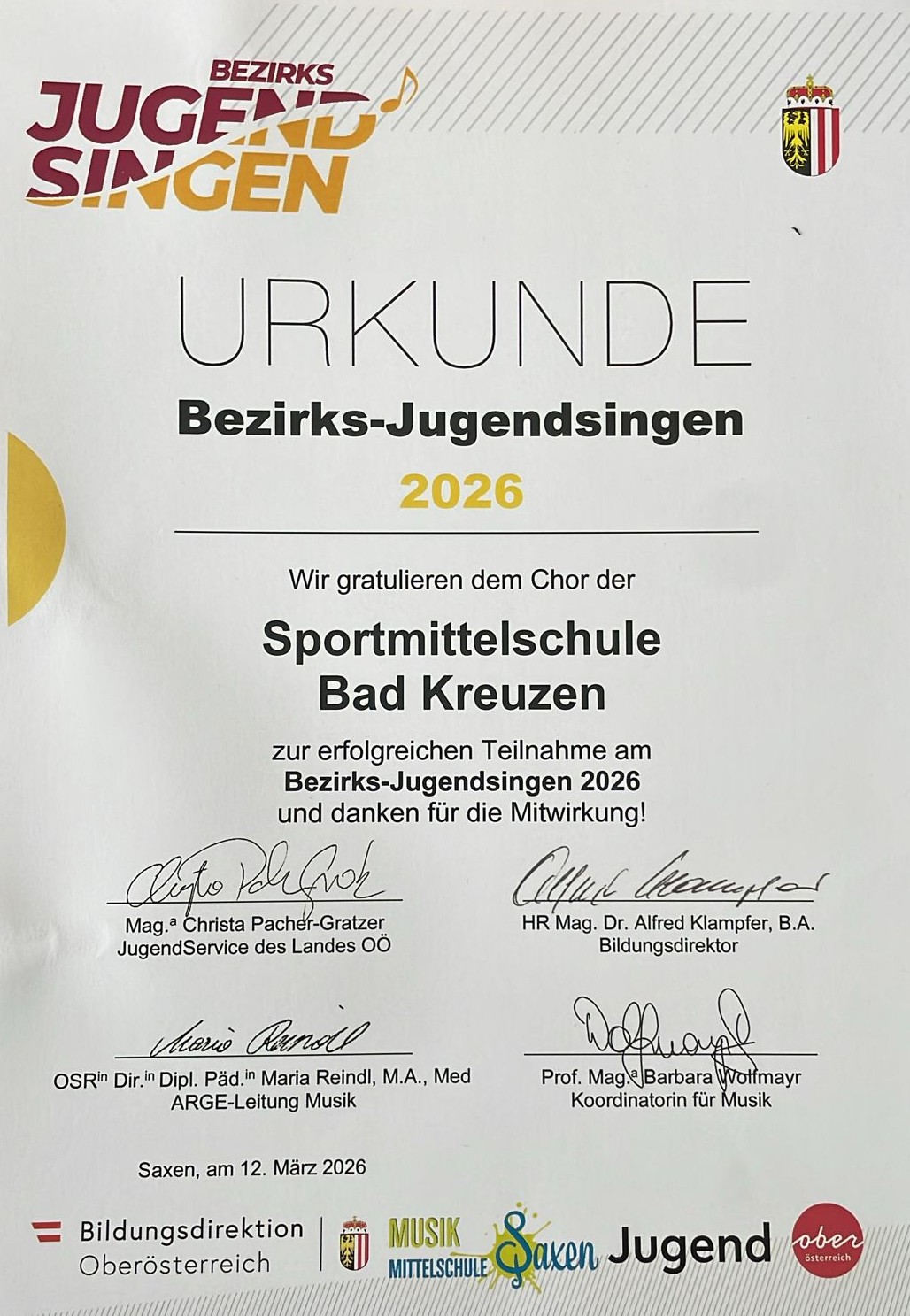 Bezirksjugendsingen Chor der Sportmittelschule nimmt erfolgreich am Bezirksjugendsingen teilBericht folgt…Bericht in der Bezirksrundschau
