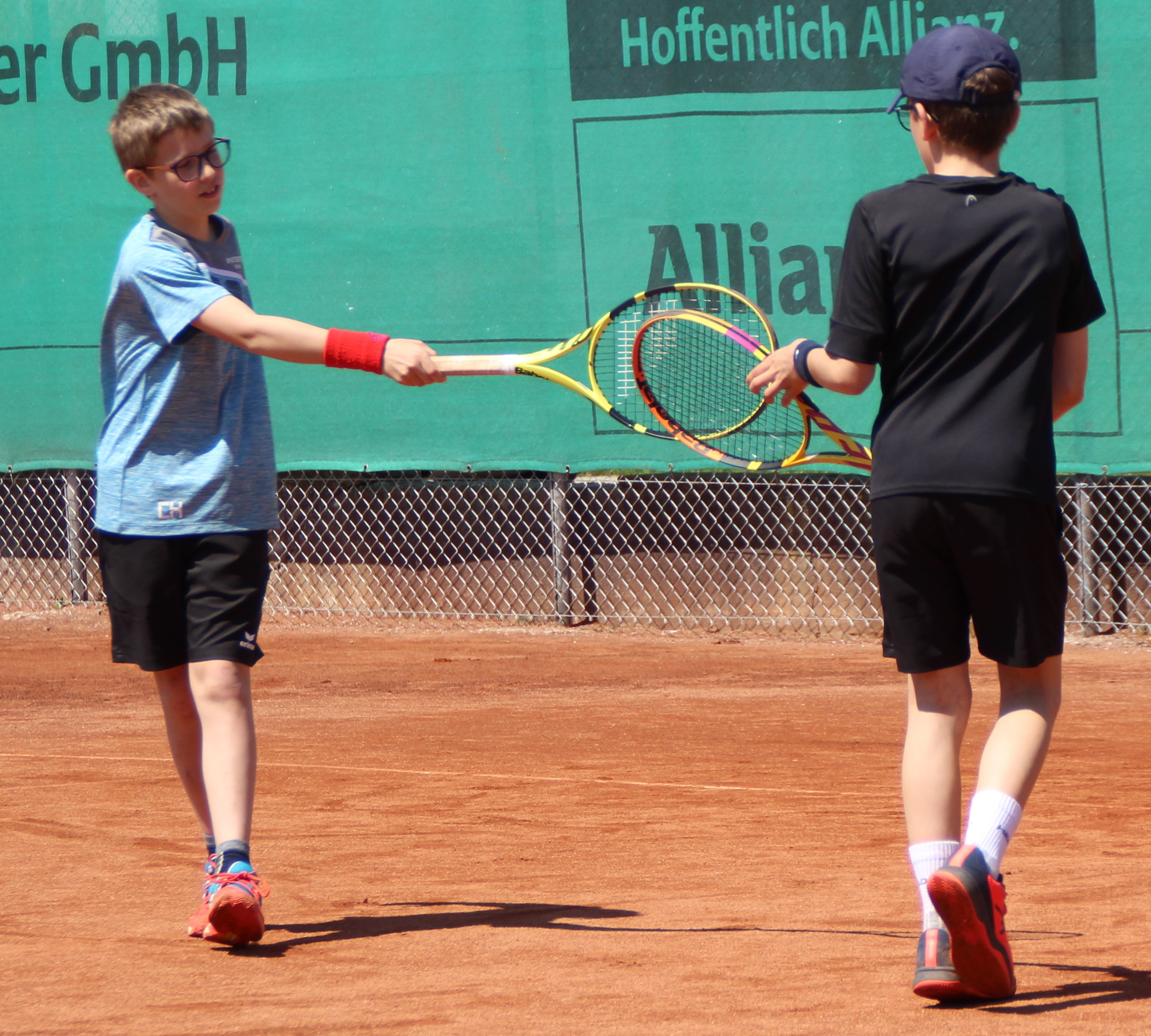 Bei herrlichem Tenniswetter gab es gleich in den ersten 4 Einzelmatches gegen das Europagym hochklassige Matches zu bewundern. Clemens Hainbuchner aus der 1a Klasse verkaufte sich gegen den technisch starken Jonas Kepplinger sehr gut. Mit unglaublichem Kampfgeist und konstanten Grundschlägen ging er im zweiten Satz sogar 5:2 in Führung und war knapp vor einem Satzgewinn, musst dann aber doch seinem Gegner zum Sieg gratulieren.