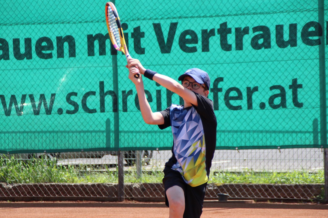 Auf dem 2. Platz entwickeltes sich zwischen Florian Lettner (2a) und Noah Brunhofer ein Match auf höchstem Niveau. Florian und Noah, die sich von einigen Matches auf Vereinsebene bereits bestens kennen, beeindruckten die anwesenden Zuschauer mit Powertennis vom Feinsten. Die Big Points konnte Florian für sich entscheiden und somit ging er als 6:4, 6:2 Sieger vom Platz.