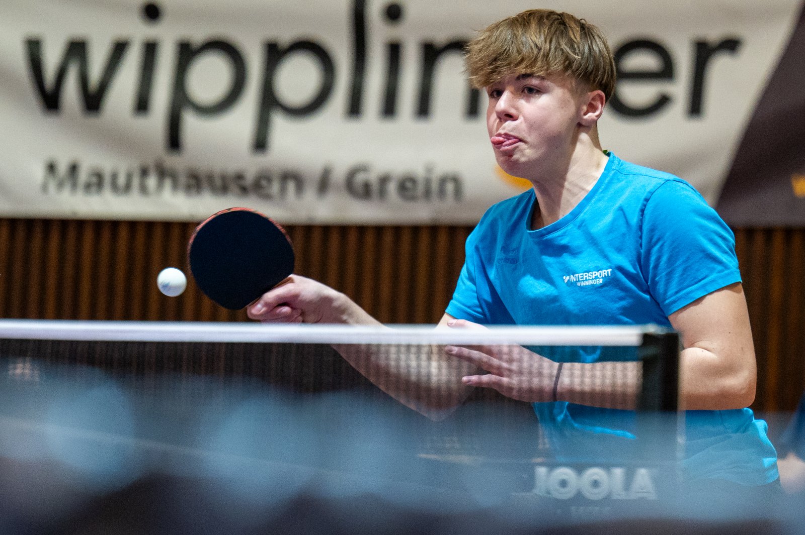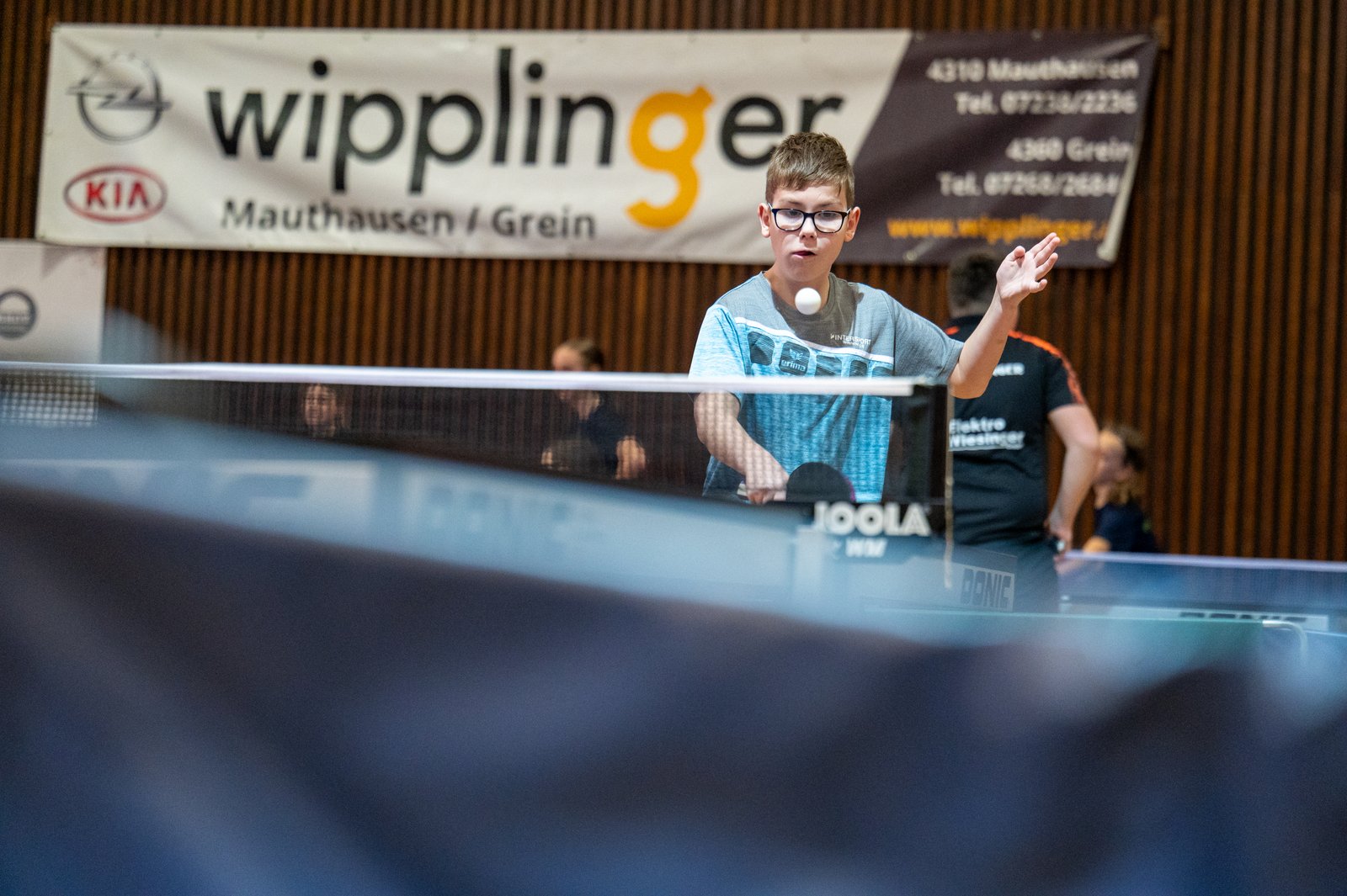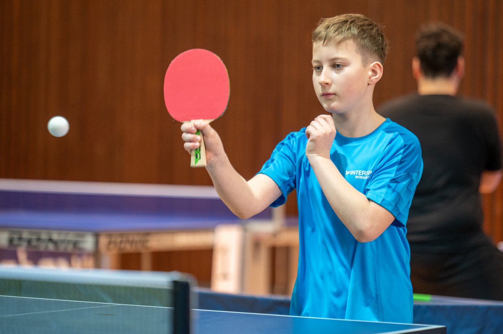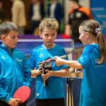 Sportschüler lassen den Tischtennisball ordentlich auf der Platte tanzen